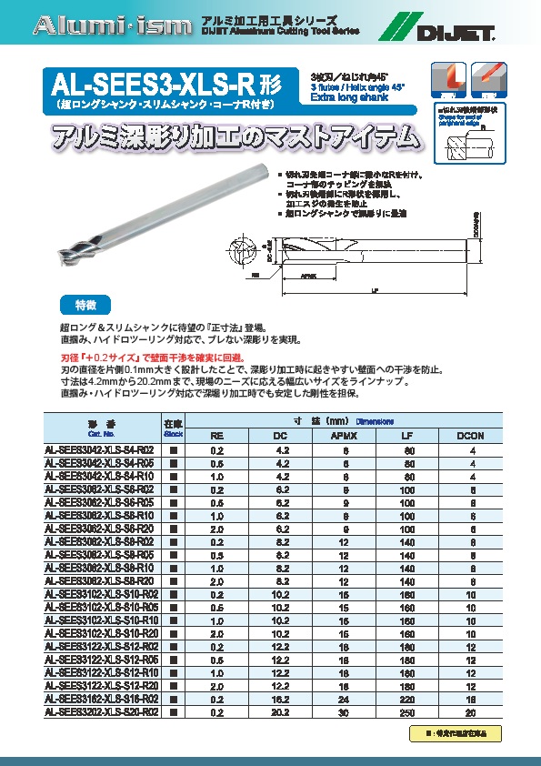 アルミ深彫り加工のマストアイテム。刃径『 +0.2サイズ』 で壁面干渉を確実に回避。