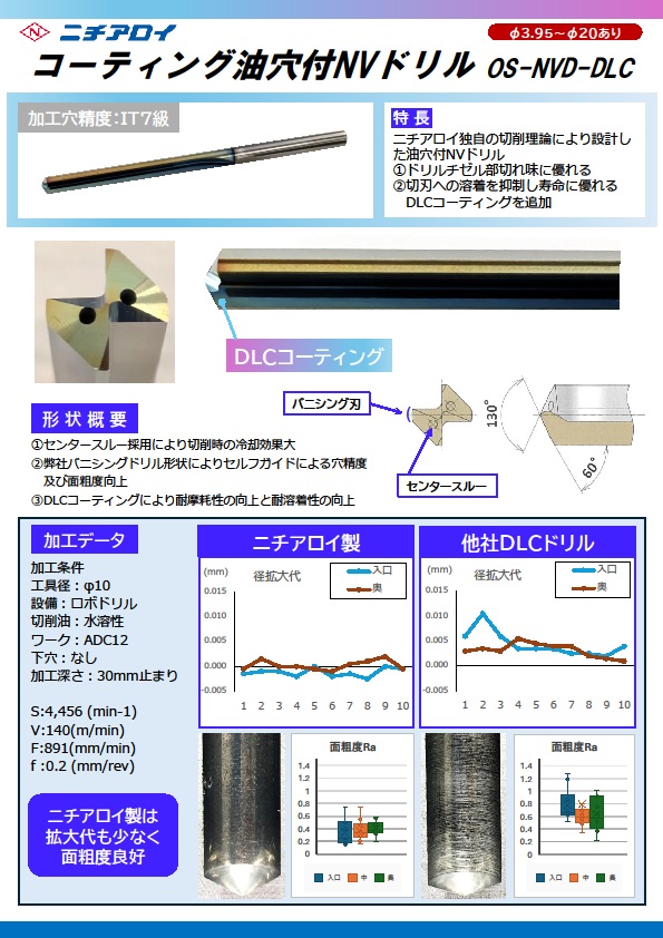 DLCコーティングを採用したオイルホール付きバニシングドリルにφ17~20を追加