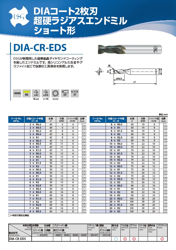 DIAコートのラジアスエンドミルのコーナーRサイズ拡大